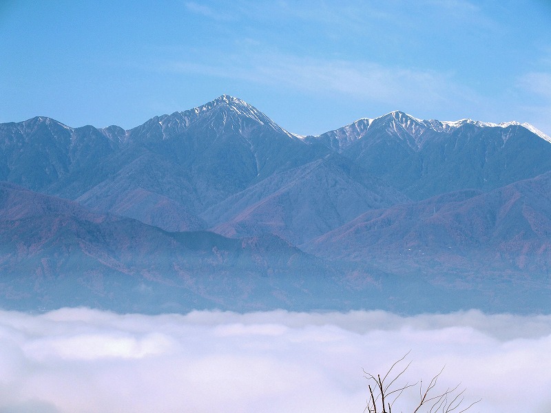 常念岳と雲海     令和7年11月 安曇平が雲海で全く見えなくなりました